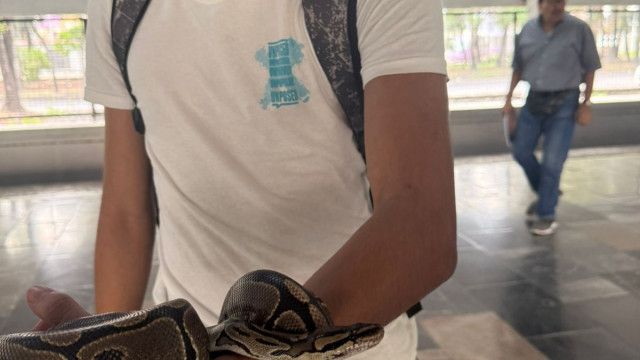Personal de seguridad del Metro detectó a un joven que portaba una serpiente en la zona de torniquetes de la estación Potrero. Esta estación se encuentra en la Línea 3 del Sistema de Transporte Colectivo.