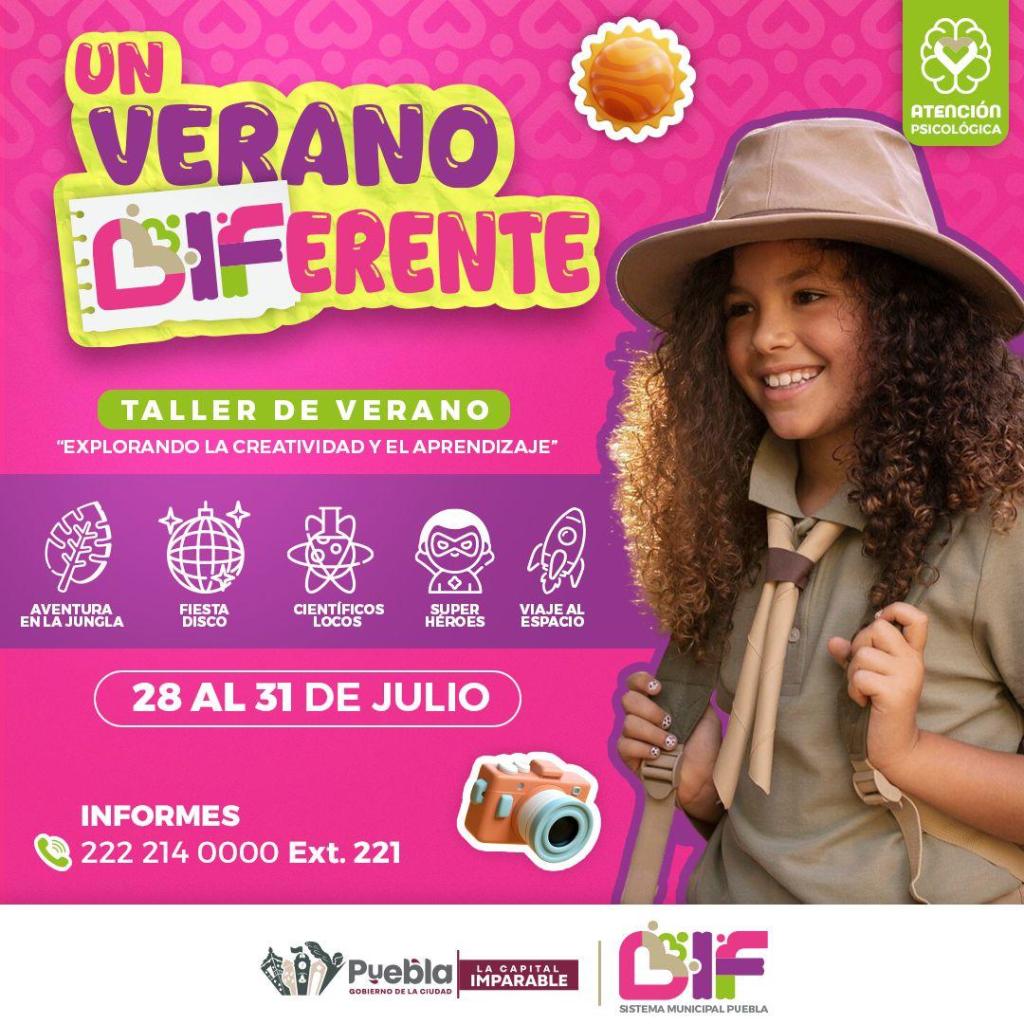 Con el propósito de ofrecer una alternativa educativa, segura y divertida durante las vacaciones escolares, el DIF Puebla Capital invita a niñas y niños de 7 a 12 años al taller “Un Verano DIFerente”. Este se llevará a cabo del 28 al 31 de julio en la Unidad Médica Integral (UMI). Esta iniciativa busca fomentar el desarrollo cognitivo y emocional en un ambiente recreativo.