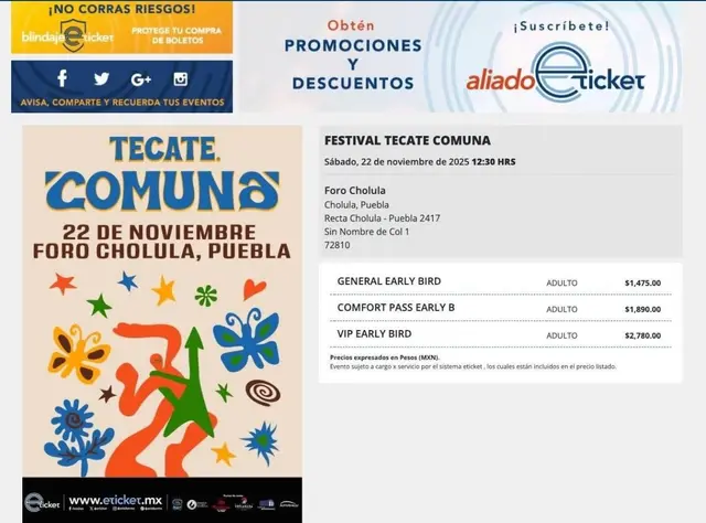 El Tecate Comuna 2025 ya tiene fecha confirmada: se realizará el próximo 22 de noviembre en el Foro Cholula, ubicado en San Andrés Cholula. Además, la venta anticipada de boletos comenzará el 23 de mayo.