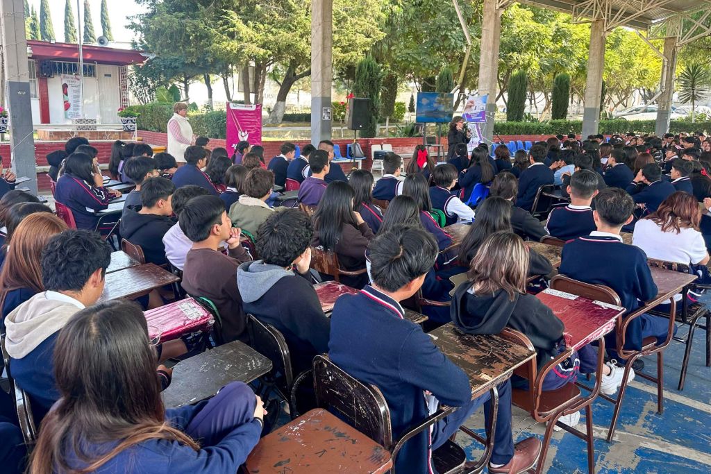Con el objetivo de promover entornos escolares seguros y fortalecer la cultura de la prevención entre las juventudes, el Gobierno de la Ciudad, a través del Instituto de la Juventud del Municipio de Puebla (IJMP), encabezado por Carolina Cabrera Victoria, impartió dos pláticas informativas a más de 400 alumnas y alumnos del Bachillerato Oficial General Sor Juana Inés de la Cruz.