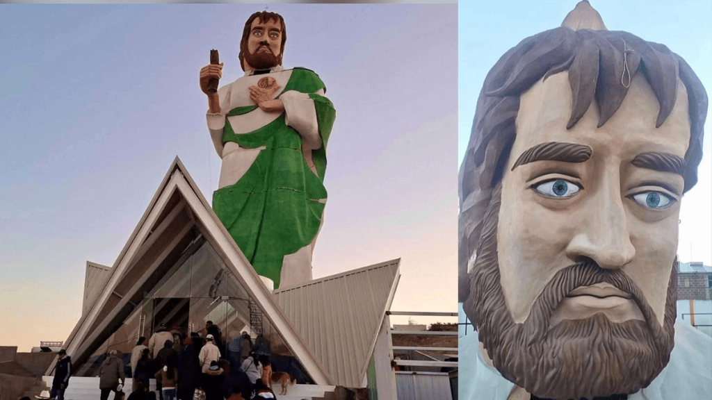 En el municipio de Esperanza, Puebla se colocó una imagen monumental de San Judas Tadeo, la cual, se volvió viral por el supuesto parecido con el cantante El Mimoso.