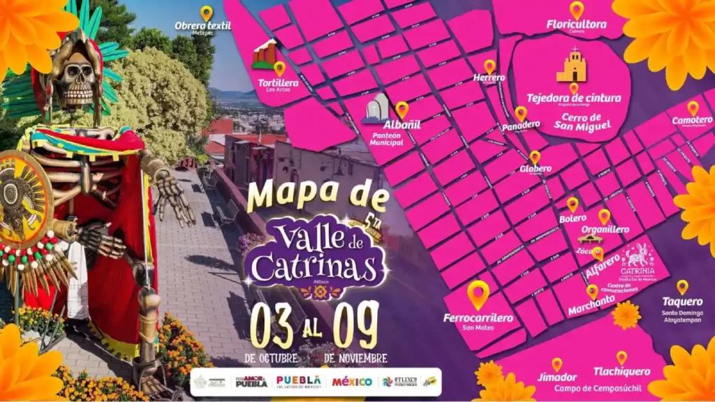 El viernes 3 de octubre se inauguró el Valle de Catrinas 2025 del municipio de Atlixco y se dio a conocer el mapa del tradicional recorrido.