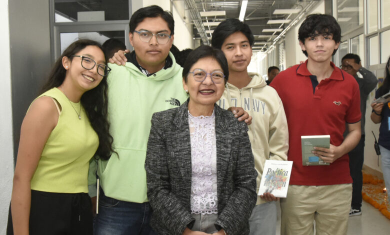 Concursos de ofrendas, carteles y disfraces fueron actividades realizadas en Ciudad Universitaria 2 (CU2). Aquí, la Rectora Lilia Cedillo Ramírez hizo un recorrido por sus instalaciones. Ella escuchó la explicación de los elementos representativos de cada altar con motivo del Día de Muertos, por parte de los estudiantes.