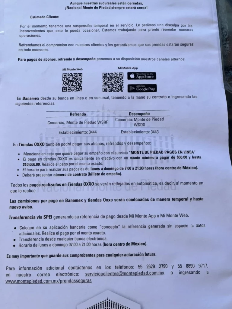 Sin embargo, este paro no afectará a los usuarios, pues no se cobrarán comisiones de custodia ni habrá remates de prendas. Los clientes podrán realizar abonos mediante la aplicación para celulares, instituciones bancarias como Banamex y tiendas Oxxo.