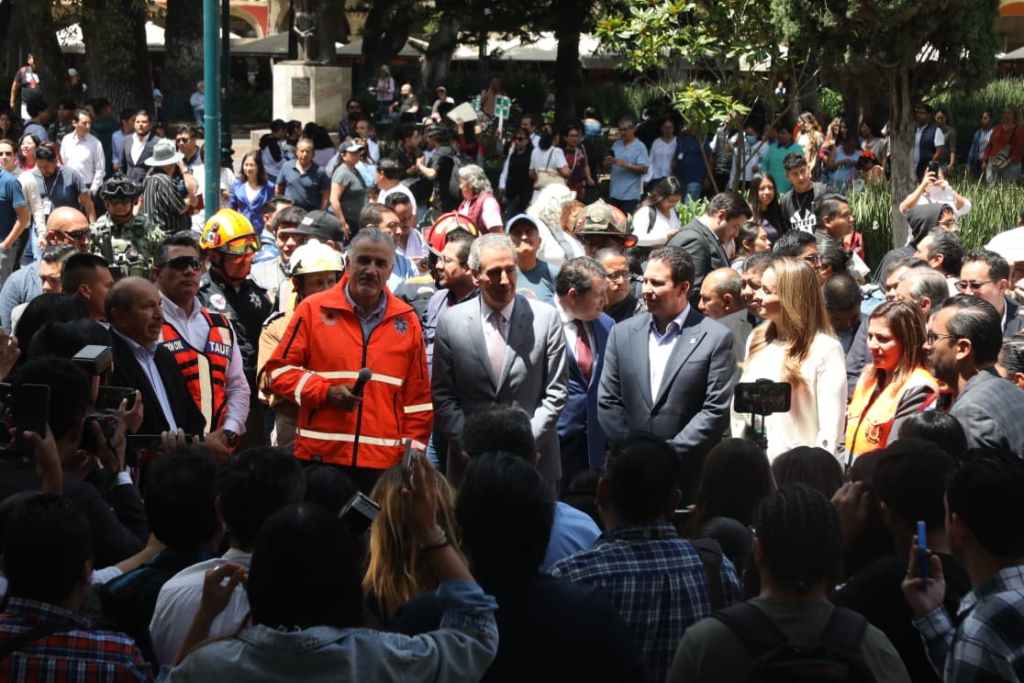 El secretario General de Gobierno, Franco Rodríguez, informó que los tiempos de evacuación mejoraron en comparación con simulacros anteriores. En el Palacio Municipal, se evacuaron 280 personas en 1 minuto 50 segundos, sin incidentes.