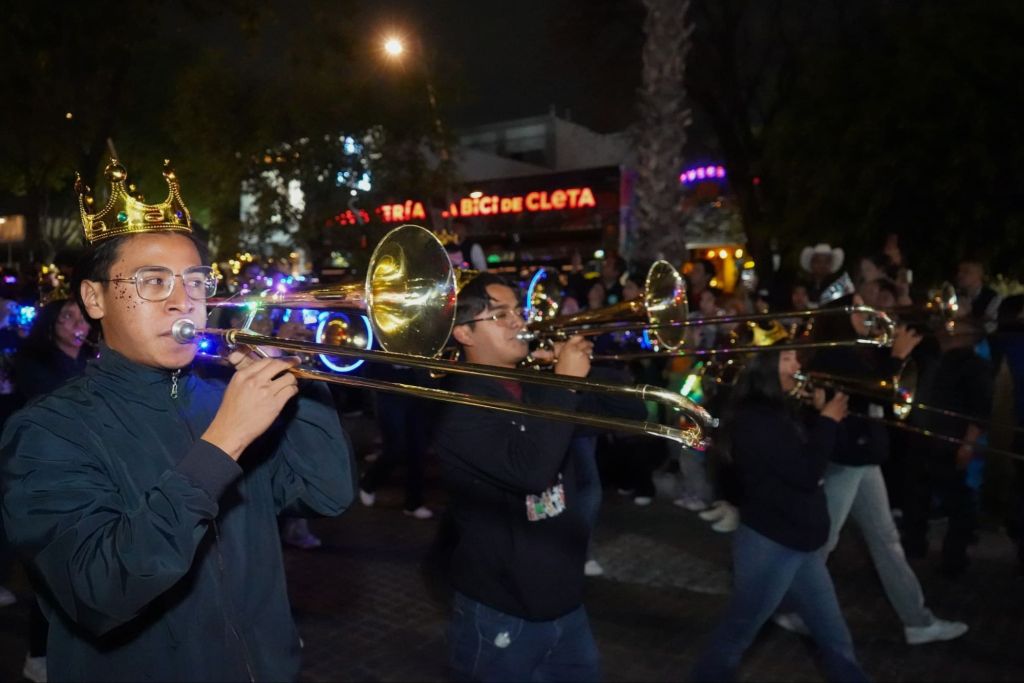 A las 18:30 horas, el cielo poblano se iluminó con un impresionante espectáculo de 40 drones durante 10 minutos, marcando el inicio del recorrido sobre la Avenida Juárez, a la altura de la 25 Sur. A partir de ahí, avanzaron los contingentes integrados por bandas de música, carros alegóricos, botargas y medios de comunicación, regalando momentos de alegría a quienes se dieron cita a lo largo de Avenida Juárez, continuando por Avenida Reforma–Juan de Palafox y Mendoza, hasta la 4 Norte-Sur.