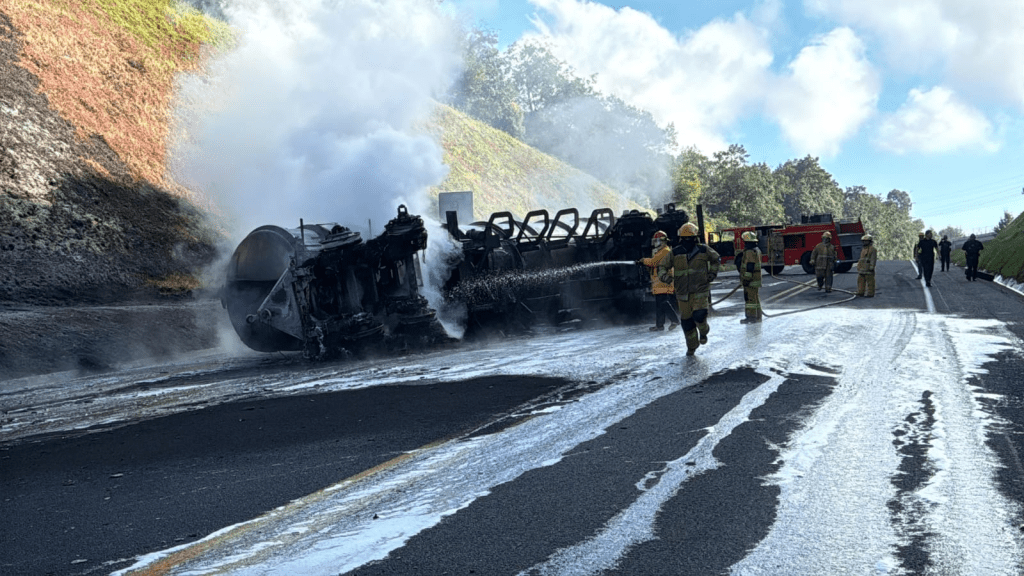 La mañana de este martes, se registró la volcadura de una pipa que transportaba gasolina en la autopista México–Tuxpan, a la altura del km 135 en el municipio de Huauchinango.