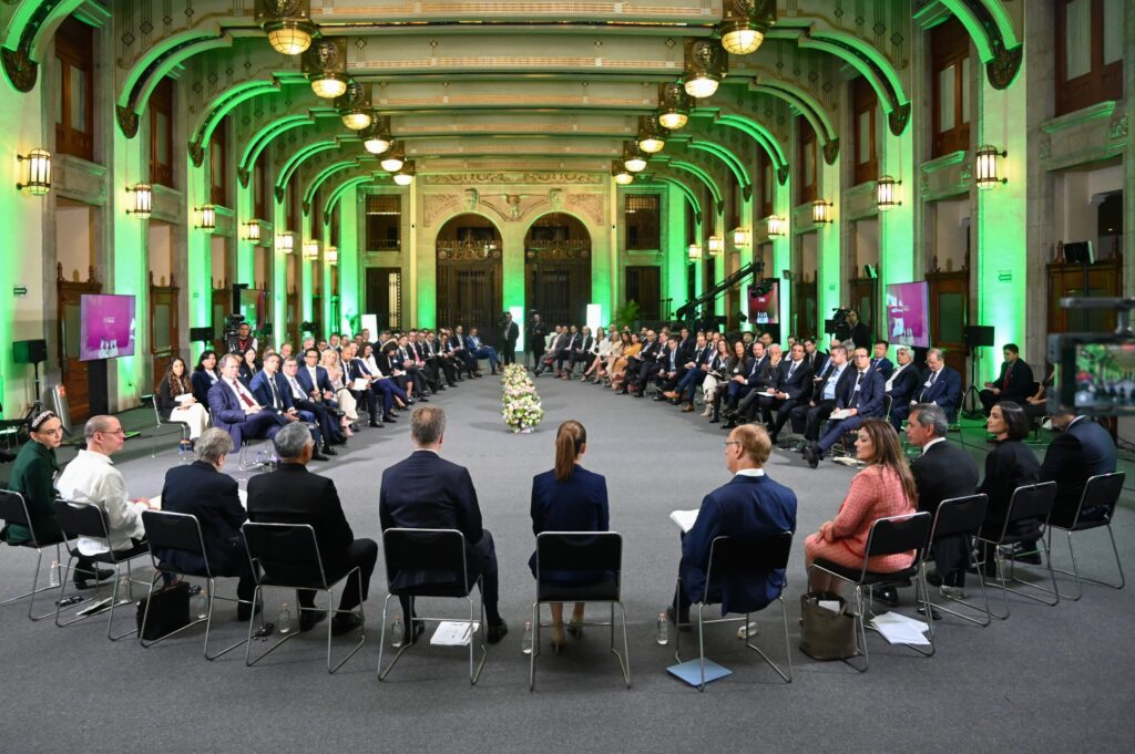 La presidenta Claudia Sheinbaum Pardo presentó ante empresarias y empresarios de 17 países miembros del Foro Económico Mundial el Plan México. Los objetivos son fortalecer el mercado interno y el salario, impulsar la inversión pública y privada y aumentar la soberanía alimentaria y energética. Esto se busca lograr reduciendo las importaciones con países sin tratado comercial.