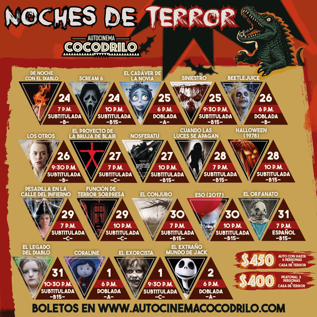 Las noches de terror llegan a Autocinema Cocodrilo durante octubre y noviembre con una cartelera de películas que van con la temporada.